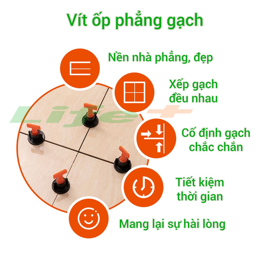 Số lượng: 50 vít lát phẳng gạch và 1 cờ lê móc