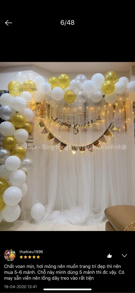 • Điểm đặc biệt cảu phụ kiện trang trí này là bạn có thể tái sử dụng. Như vậy, phụ kiện rèm voan rất tiện lợi mà còn giúp cho bạn tiết kiệm một khoản chi phí khi trang trí sự kiện trong lần tới.