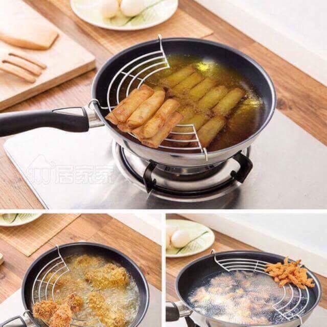 Gác chảo được thiết kế có khe hở giúp thực phẩm chiên rán mau ráo mỡ. Sản phẩm giúp thức ăn của bạn ngon miệng, không bị ngấy do dầu, mỡ.