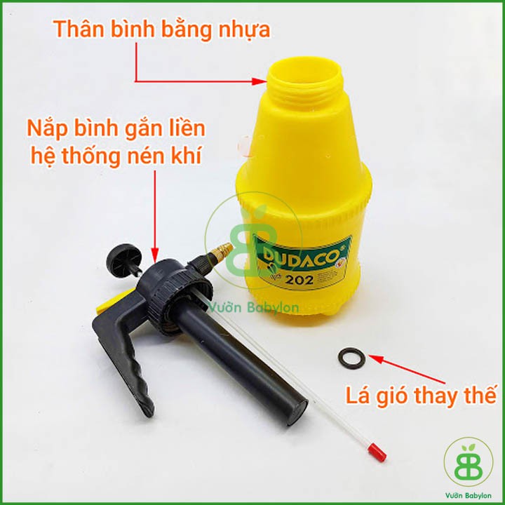 Bình DUDACO 2 lít loại không đế, béc đồng, dùng được với các loại hóa chất, nông dược thông thường.