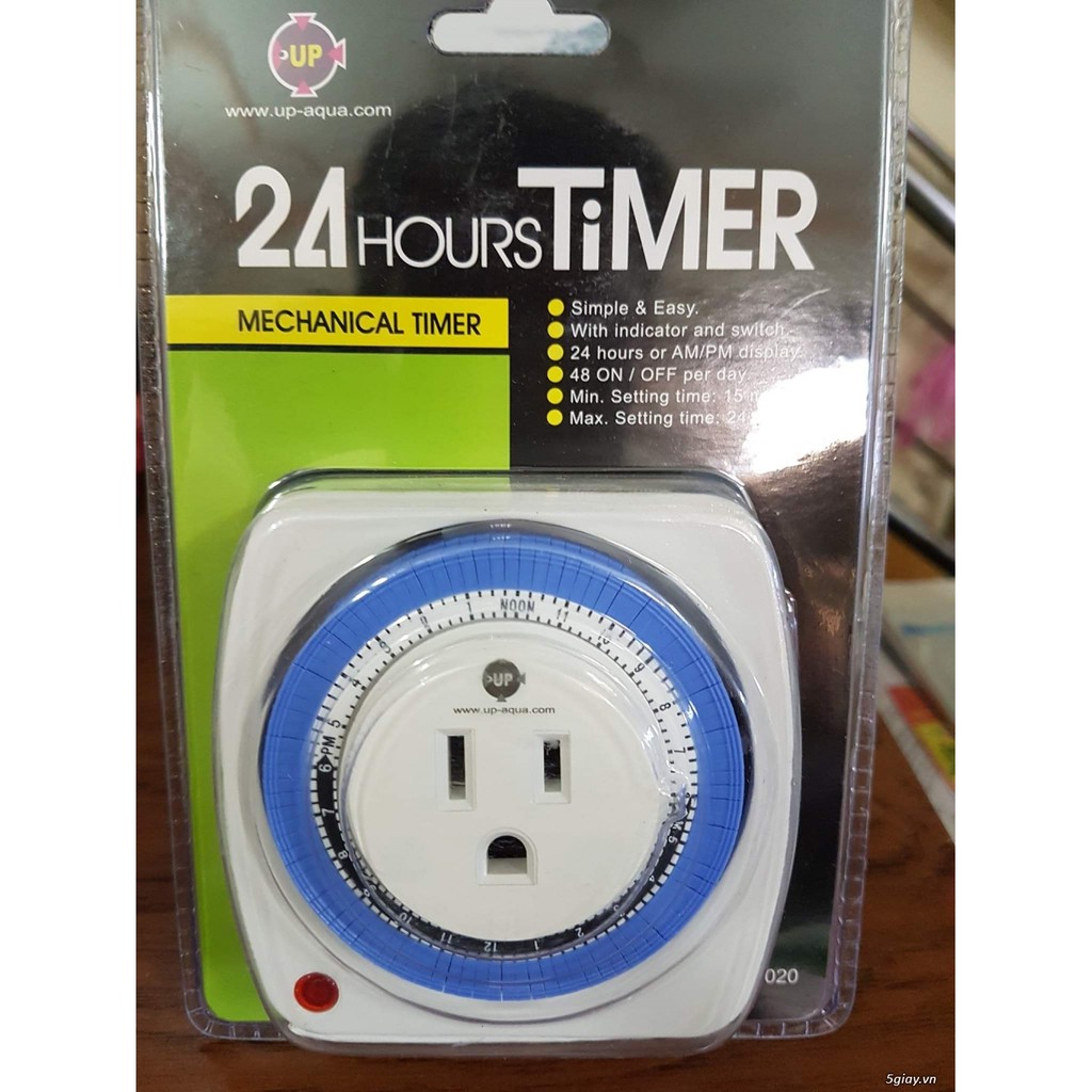Đồng hồ hẹn giờ 24 Hours Timer Up-Aqua - Hiện có mẫu mã mới là Top-Aqua với tính năng y hệt (chỉ khác nhãn)Là thiết bị chuyên dùng cho hẹn giờ bật tắt tự động các thiết bị điện trong trồng rau thủy canh và nuôi cá cảnh thủy sinh... như bật tắt máy bơm, bật tắt đèn ... theo thời gian đã cài đặt sẵn