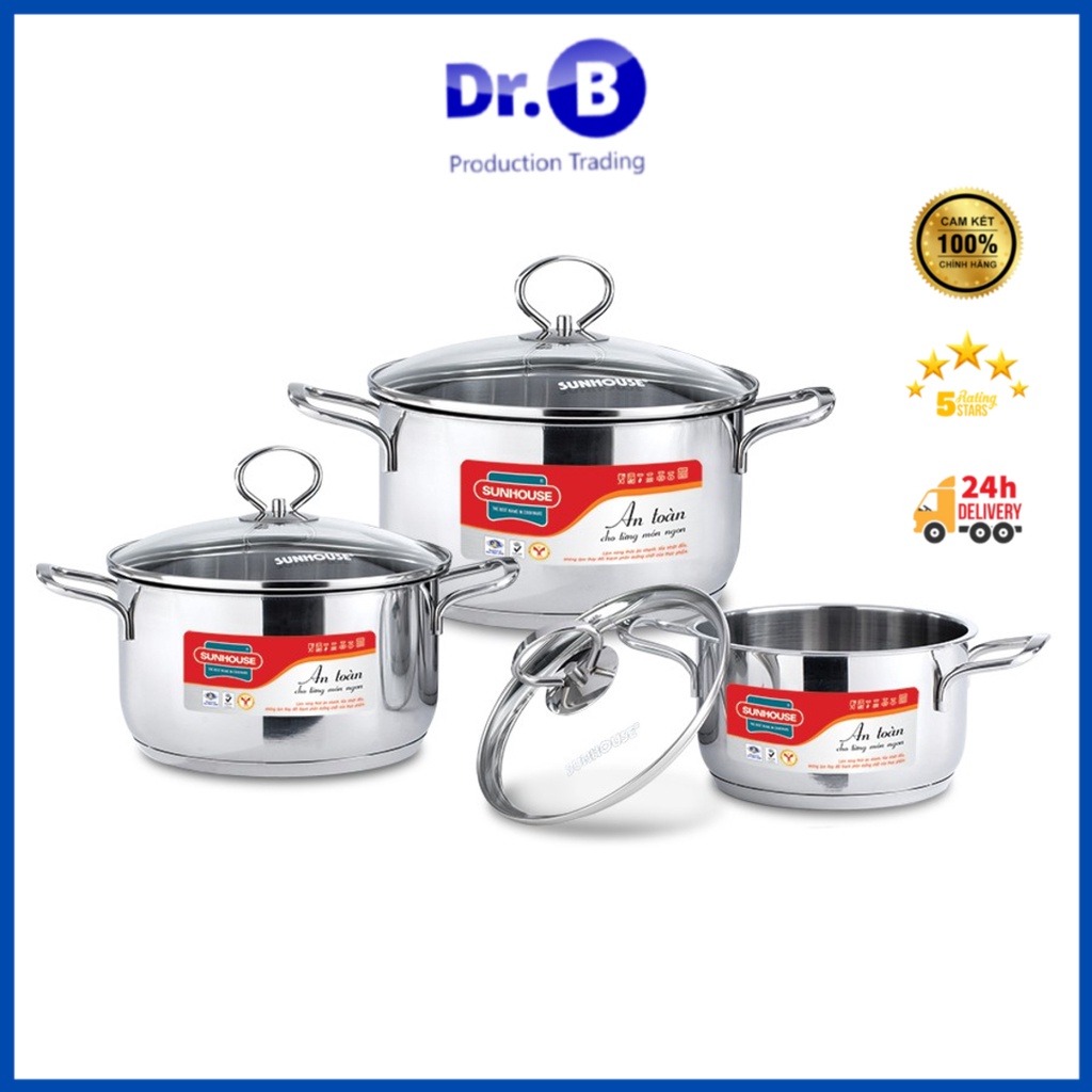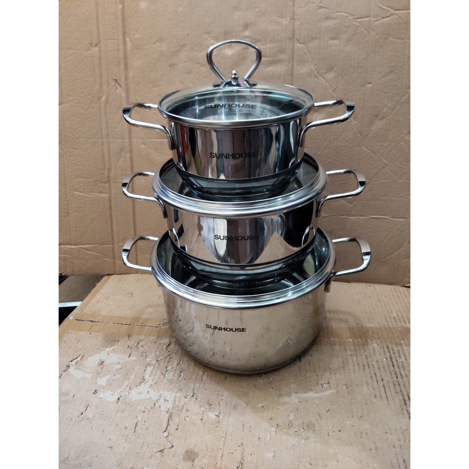 Nhà cửa & Đời sống > Dụng cụ nhà bếp > Nồi || Bộ nồi Inox SUNHOUSE SH888 3 đáy quai đũa cao cấpCòn hàng