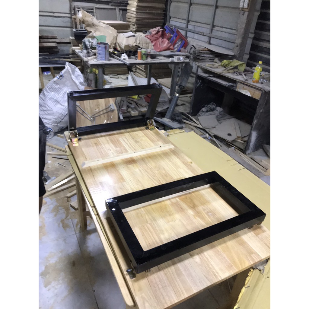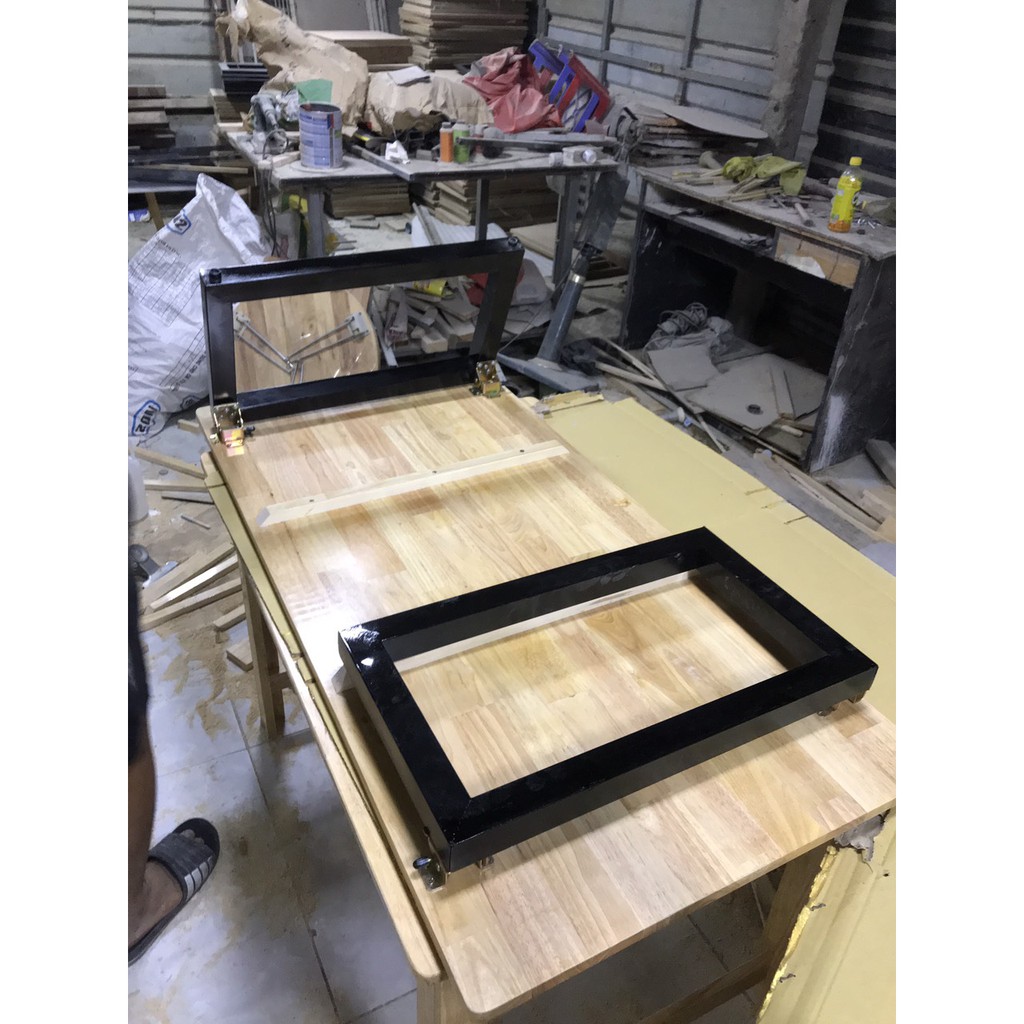 Chân bàn cao 35cm, sắt hộp dày 1,2mm, thanh sắt rộng 2cm dài 4cm, chắc chắn tuyệt đối, có thể lắp đặt bản lề xếp gọn hoặc cố định, chân sơn chống rỉ.