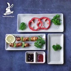 Giới thiệu Dĩa vuông chữ nhật có vân màu nâu Nhám nhựa Melamine đựng đồ nướng, sushi