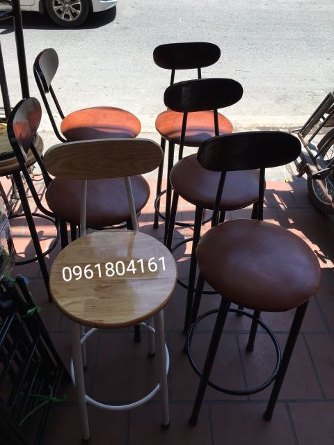 Ghế quầy bar có đệm tựa lưngChất liệu : khung sắt- mặt gỗ tự nhiên hoặc mặt đệm bọc da pvc