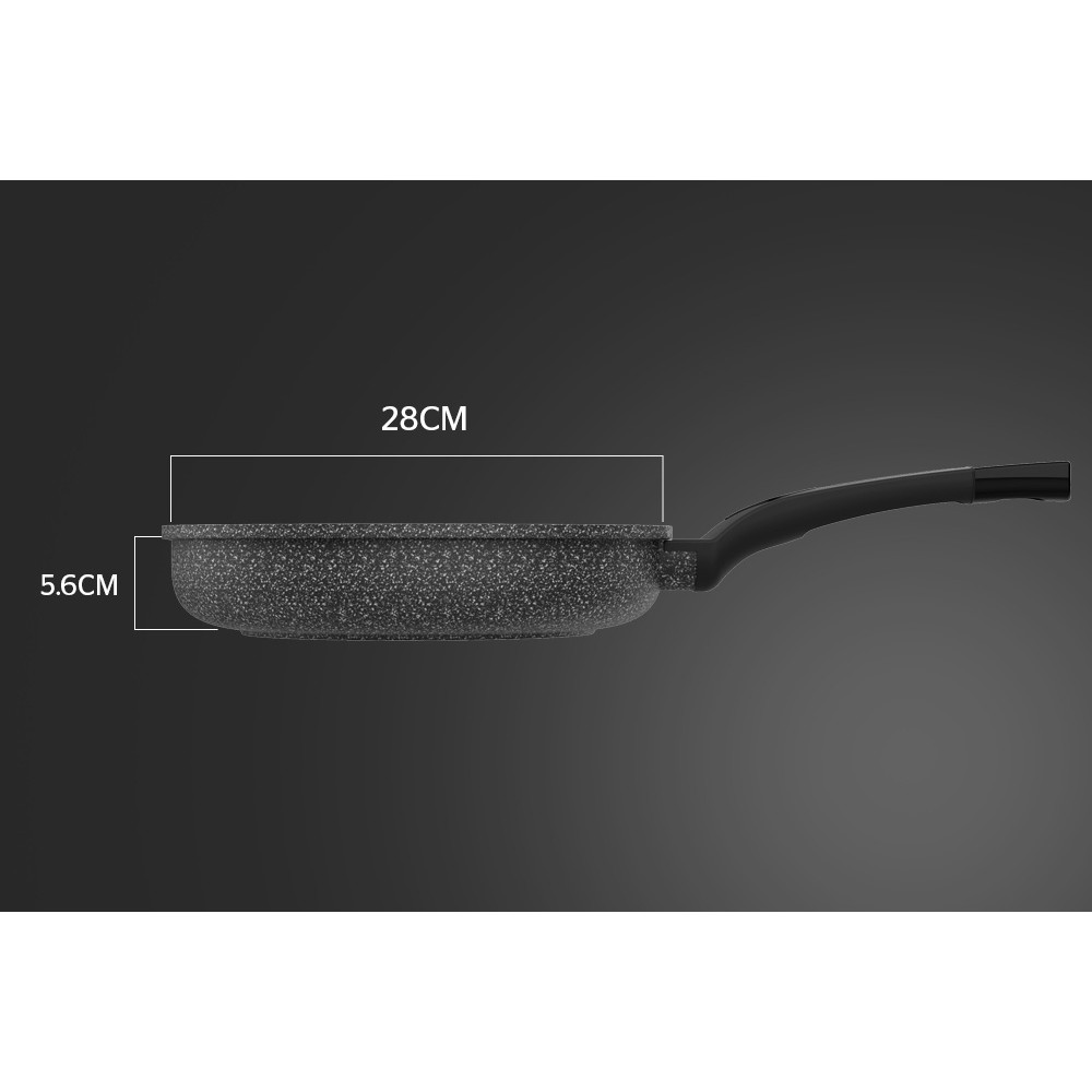 Chất liệu hợp kim nhôm tráng vân đá hoa cương bắt nhiệt rất tốt, tỏa nhiệt đều giúp dễ dàng xào nấu với lượng thực phẩm vừa đủ cho gia đình từ 3-5 người.