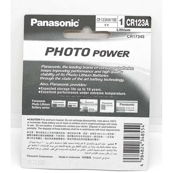 Vỉ 1 Viên CR123 ( CR123A )Panasonic Lithium 3 V - Hàng chính hãng