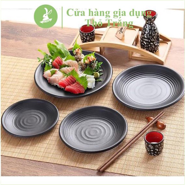 Nhà cửa & Đời sống > Bộ đồ bàn ăn > Dĩa || Dĩa nhựa melamine tròn có vân màu đen nhám cao cấp đủ sizeCòn hàng