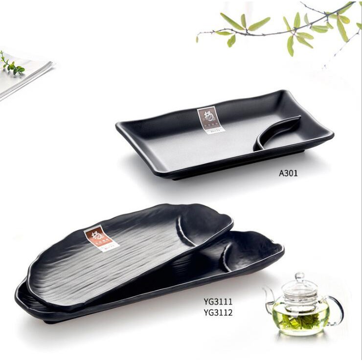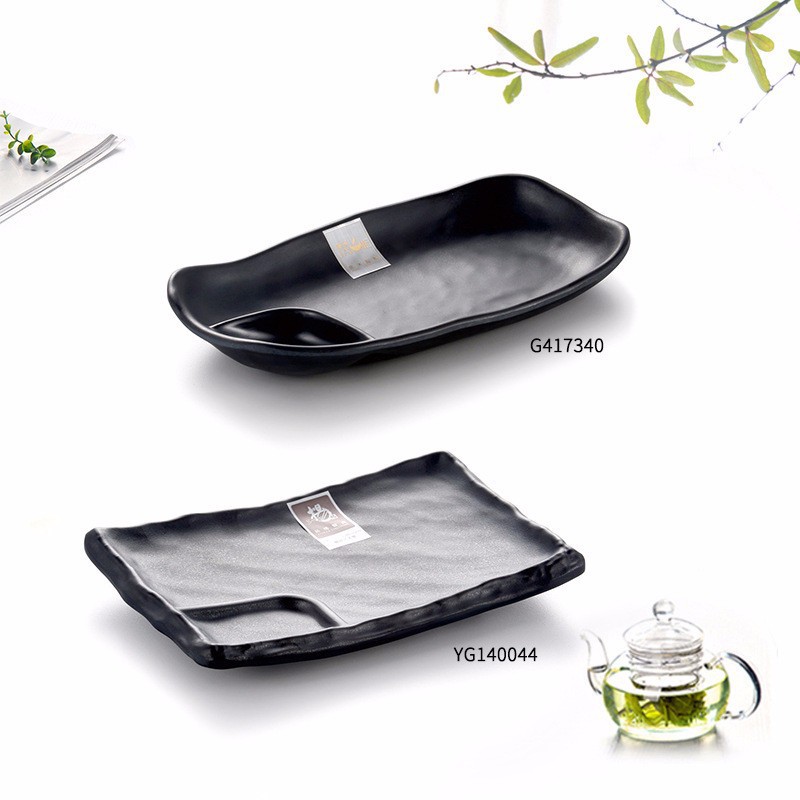 Nhà cửa & Đời sống > Bộ đồ bàn ăn > Dĩa || Dĩa nhựa đen hình bán nguyệt có ngăn nhỏ để nước sốt cho món ăn vặt đủ sizeCòn hàng