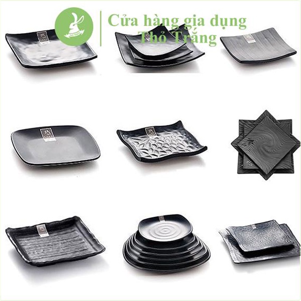 Nhà cửa & Đời sống > Bộ đồ bàn ăn > Dĩa || Dĩa vuông màu đen để món khai vị, BBQ, decor, trang trí bàn tiệcCòn hàng