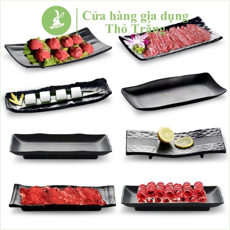 Dĩa hình chữ nhật màu đen để thịt nướng BBQ, trang trí thức ăn, bàn tiệc đủ size