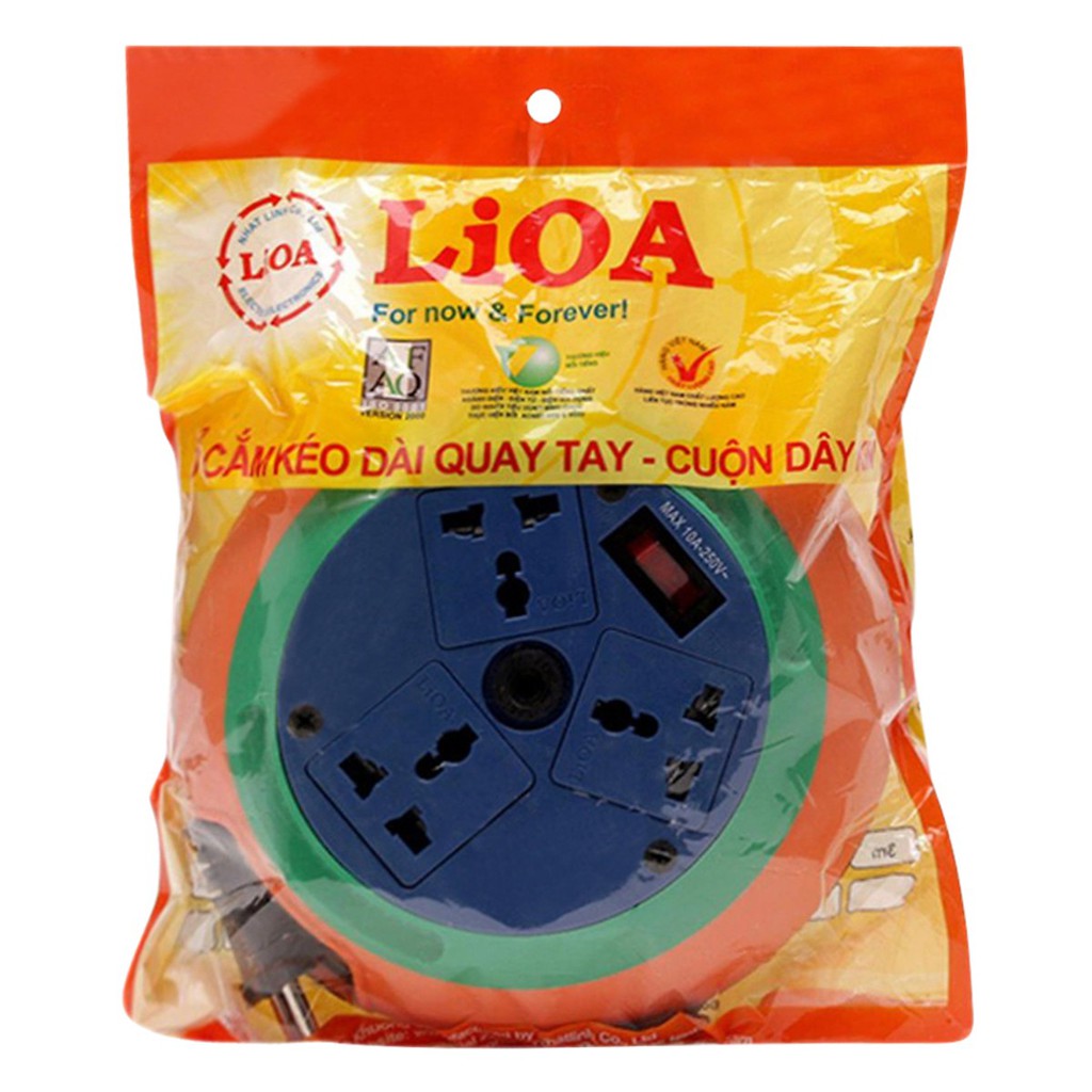 Thiết Bị Điện Gia Dụng > Mạch điện & Phụ tùng > Ổ cắm điện & Dây nối || Ổ cắm kéo dài quay tay LiOA 3 ổ cắm đa năng, Kiểu đĩa bay hàng chính hãng LiOA 5m/10mCòn hàng
