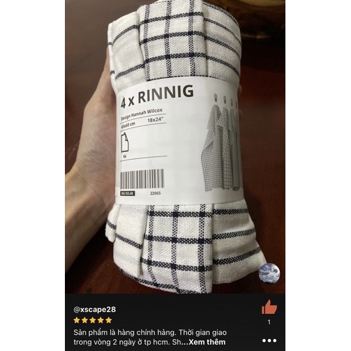 Giới thiệu [4 KHĂN] Khăn lau chén bát IKEA RINNIG 100% Cotton không để lại bụi vải