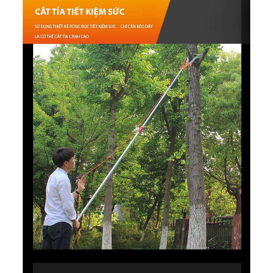 Dài 2.5 đến 7m-Kéo cắt cành trên cao nhập khẩu Đài Loan dài 5 met giật dây