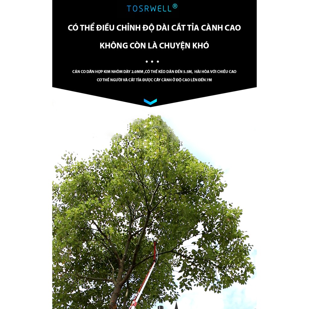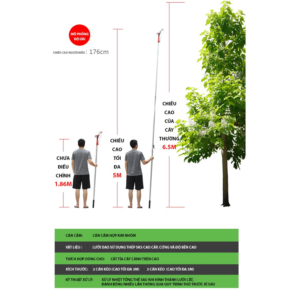 Giới thiệu Dài 2.5 đến 7m-Kéo cắt cành trên cao nhập khẩu Đài Loan dài 5 met giật dây