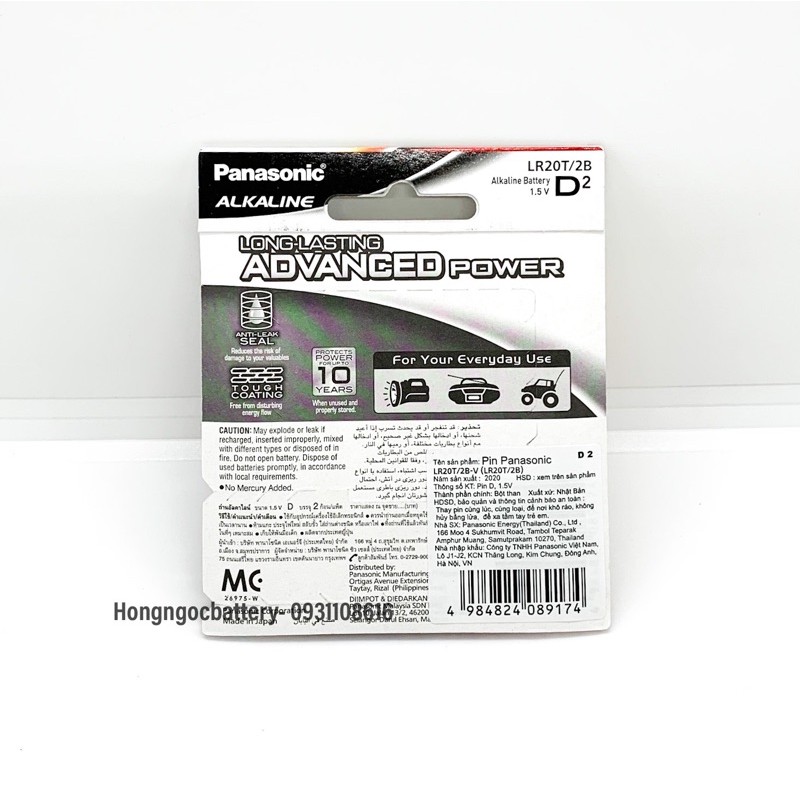 Pin Đại Alkaline ( Pin D ) Panasonic1,5V - Vỉ 2 Viên Hàng Chính Hãng