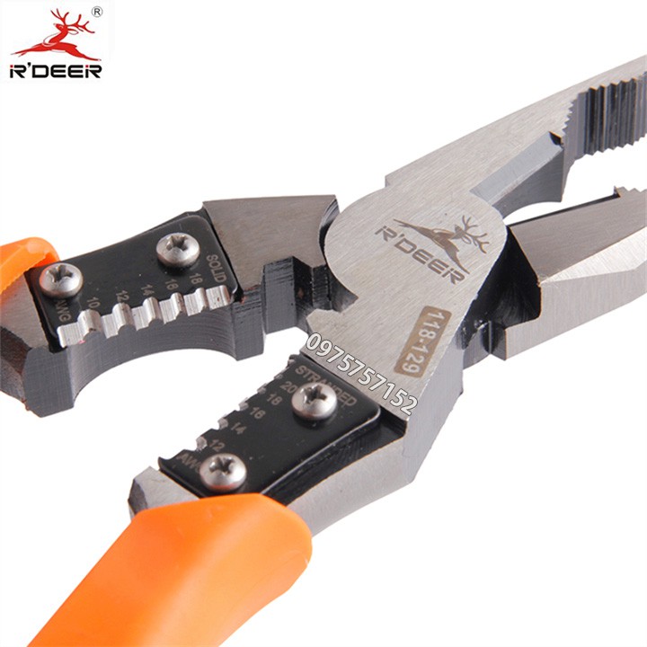 Kìm điện đa năng cao cấp 4 trong 1 R'DEER 118-139 9inch/225mm (Kẹp-Cắt-Uốn-Tuốt dây)