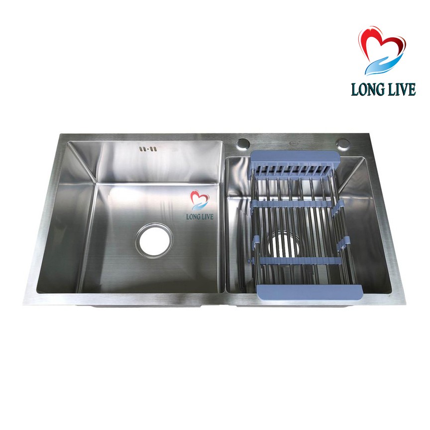 Combo Chậu rửa chén bát Inox 304 đúc nguyên khối (2 hố lệch)