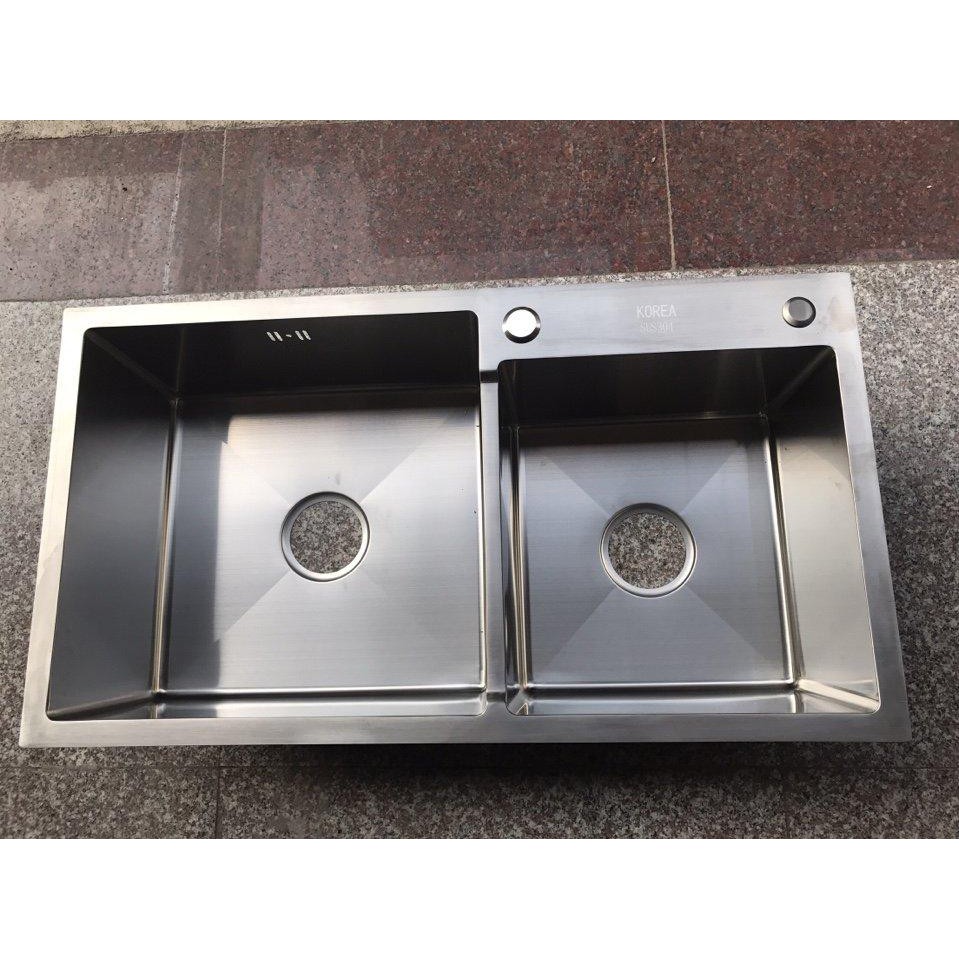Nhà cửa & Đời sống > Dụng cụ & Thiết bị tiện ích > Chậu rửa & vòi nước || Combo Chậu rửa chén bát Inox 304 đúc nguyên khối (2 hố lệch)Còn hàng