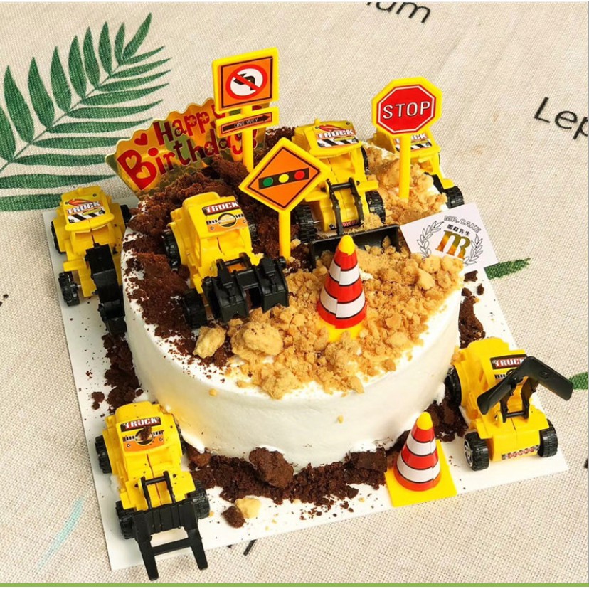 Giới thiệu Bộ 6 xe công trường trang trí bánh, bộ máy xúc trang trí
