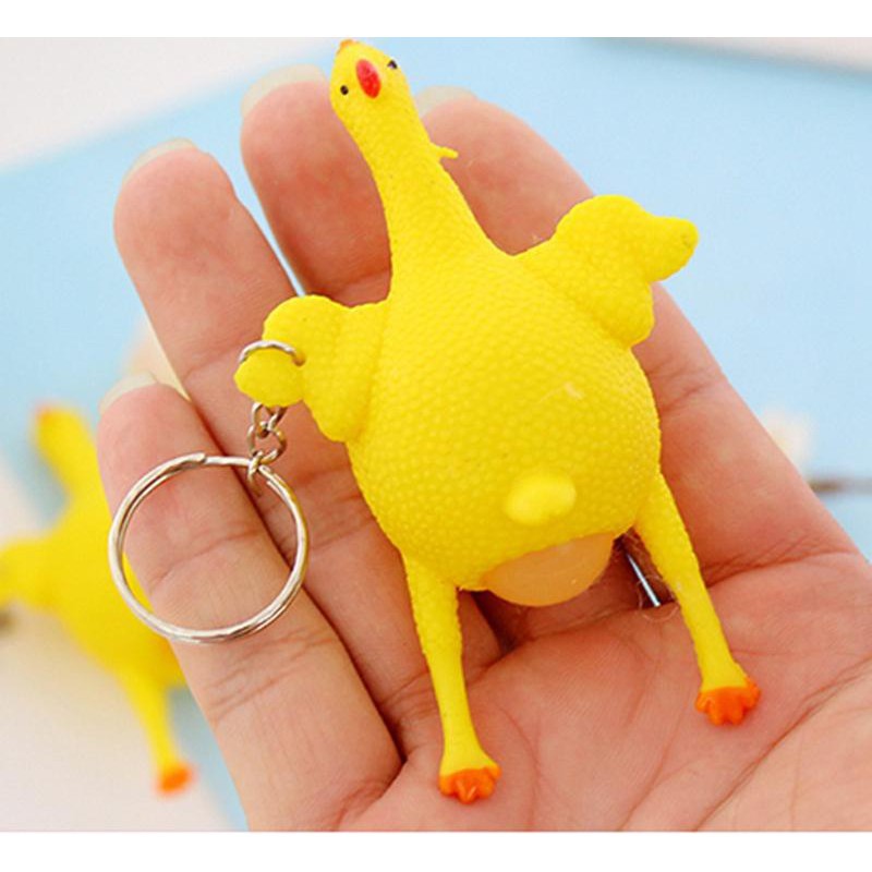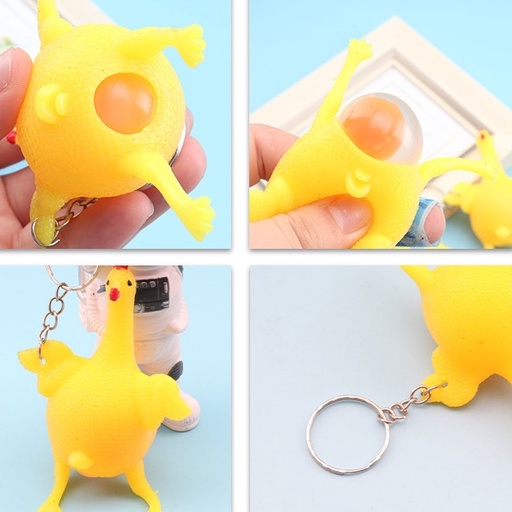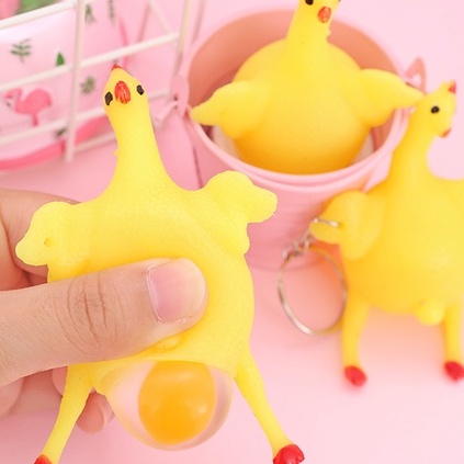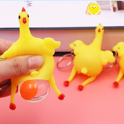 - Chiếc móc khóa hình chú gà nhựa đáng yêu thoạt nhìn chỉ là một chiếc móc khóa bình thường, nhưng khi bạn bóp nhẹ bên dưới chú gà sẽ đẻ ra một quả trứng gà trông cực đáng yêu.