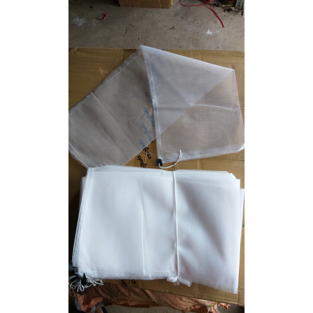 Túi bao làm từ lưới mềm dạng dây rút chuyên dùng bao trái Mướp, bầu, bí xanh...Rất khoáng khí, mau khô khi trời mưa, tránh đọng nước, hạn chế các bệnh ghẻ, nấm trên vỏ trái.