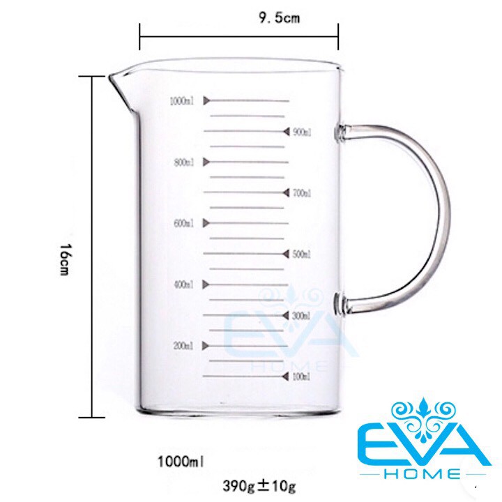 - Cốc đo lường 1000 ml được làm từ chất liệu thủy tinh siêu dày, chịu nhiệt tốt.