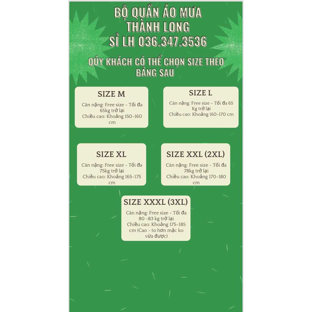 QUY ĐỔI SIZE ÁO MƯA: