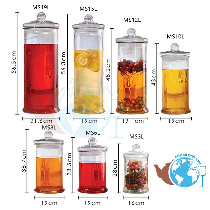 Giới thiệu Bình ngâm rượu thủy tinh 10 lít trụ trơn có van và không van