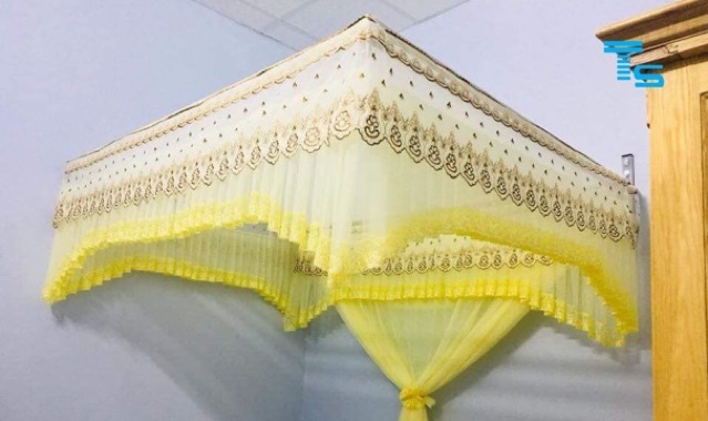 Đình màn được buộc cố định trên khung màn,