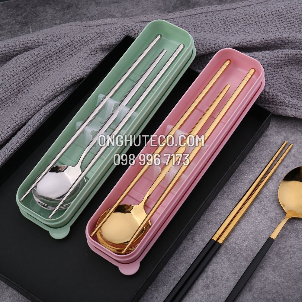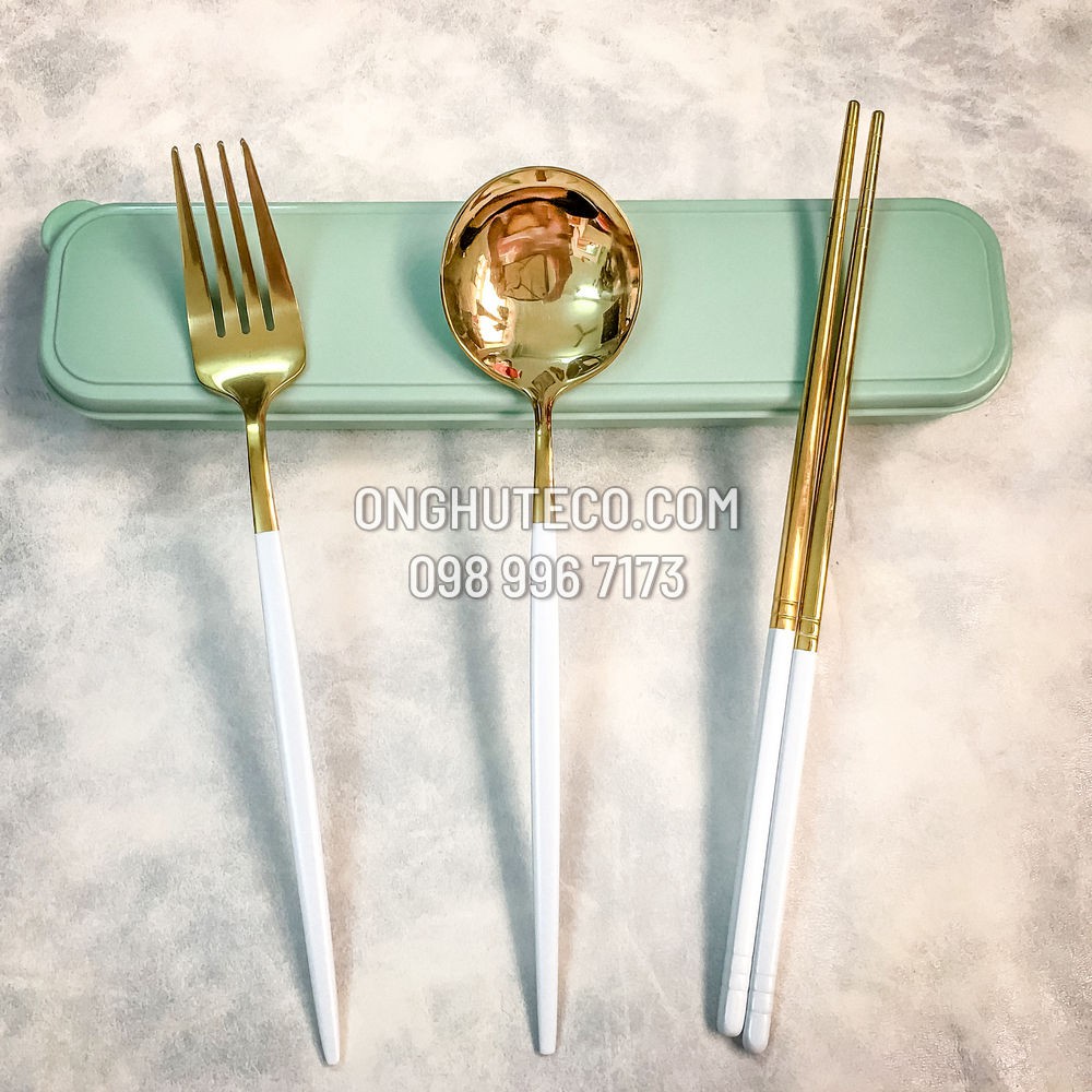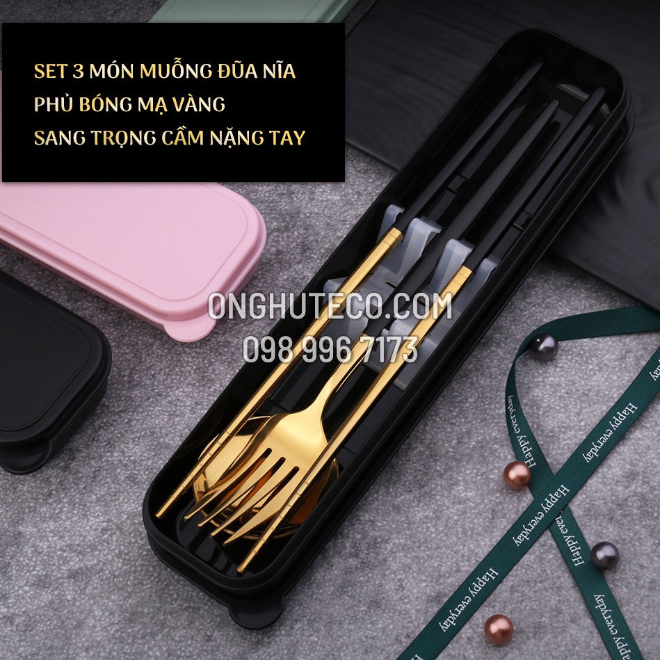 Set 3 Món Muỗng Đũa Nĩa Cơm Trưa Phủ Bóng Mạ Vàng Sang Trọng