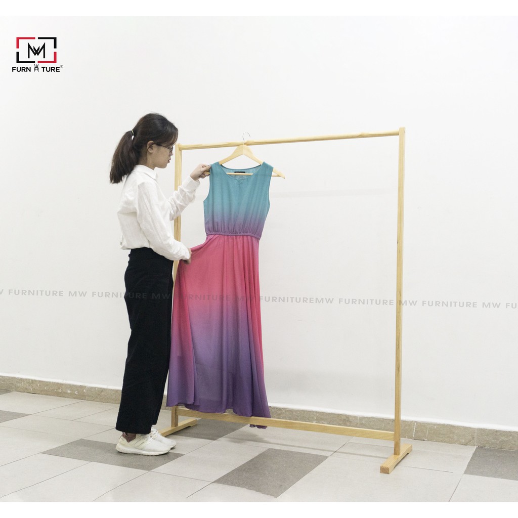 Giới thiệu Giá treo quần áo thanh đơn màu gỗ size lớn 120x150x40 cm - MW FURNITURE - nội thất xuất khẩu