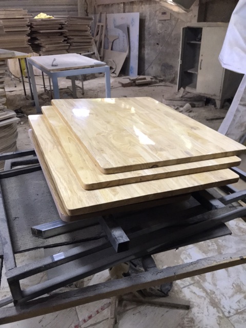 Chất liệu: Gỗ cao su ghép thanh tự nhiên, phủ keo 2 mặt, Mặt gỗ đã đc bo góc, cạnh, Sơn lót PU cạnh để bảo vệ lõi gỗ
