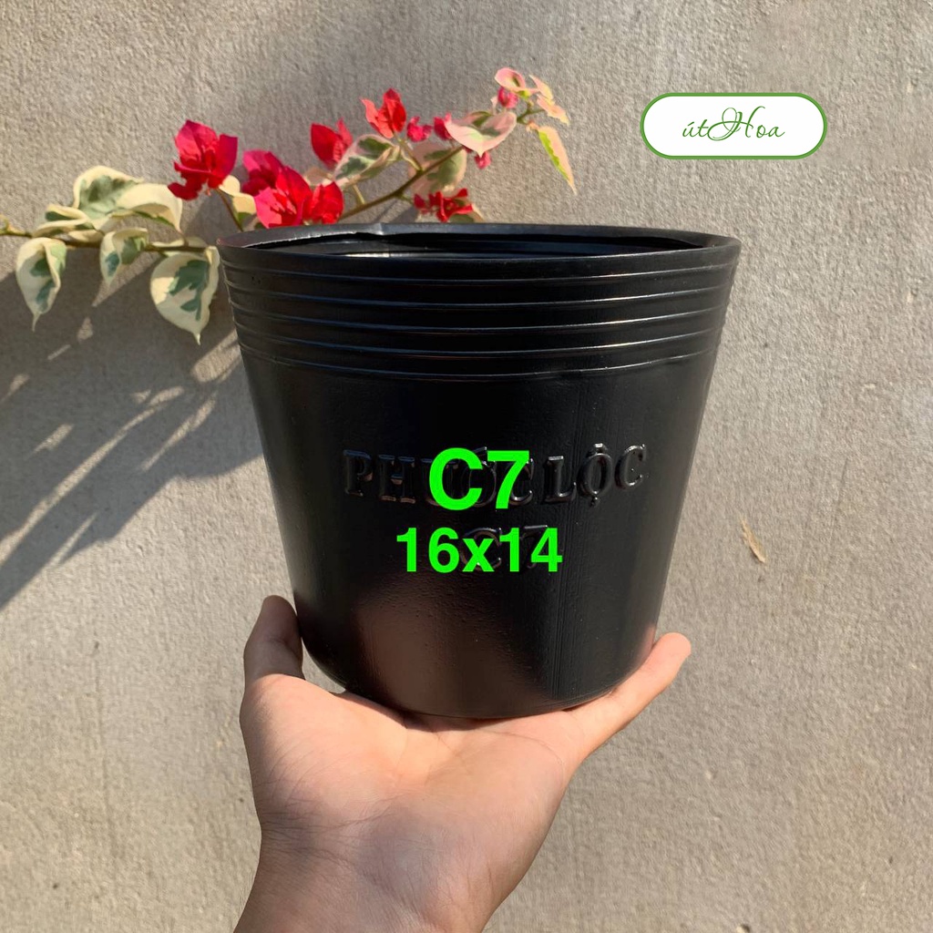 🌿Chậu C7 là loại có kích thước hơi nhỏ nên thích hợp trồng hoa, rau xanh và ươm cây. Loại chậu đen này có rất nhiều kích thước khác nhau, nếu cần chậu lớn hơn hoặc nhỏ hơn quý khách vui lòng chọn các kích thước khác như C6, C7, C8, C9, C10, C11, C12, C13,... ở các mục sản phẩm khác của gian hàng.