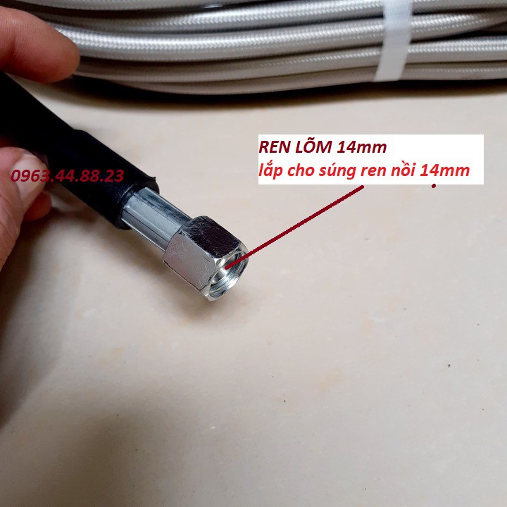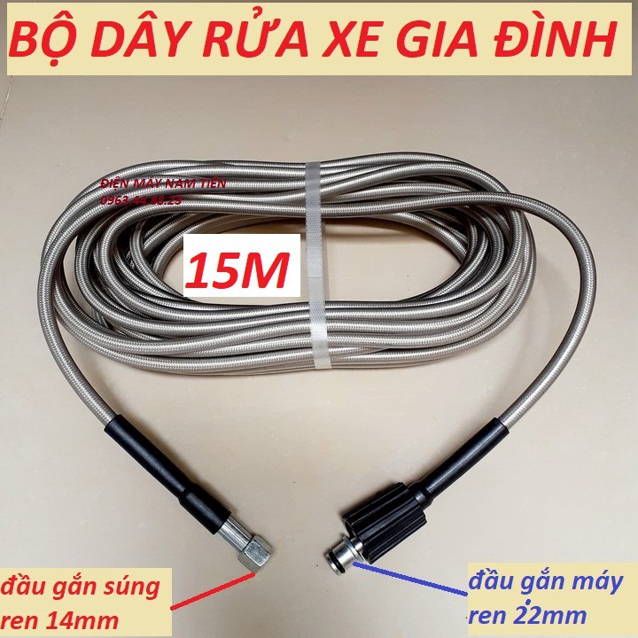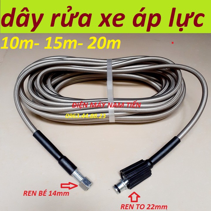 Dây Rửa Xe 10m,15m.20m Cho Máy Bơm Xịt Rửa Áp Lực Cao - Ren nối sung 14mm