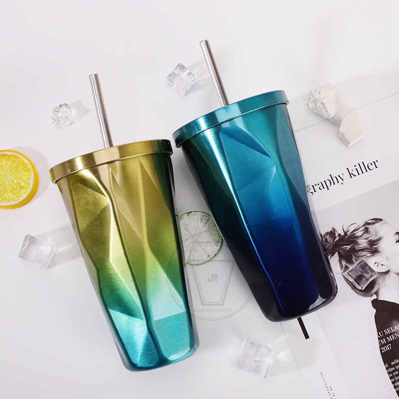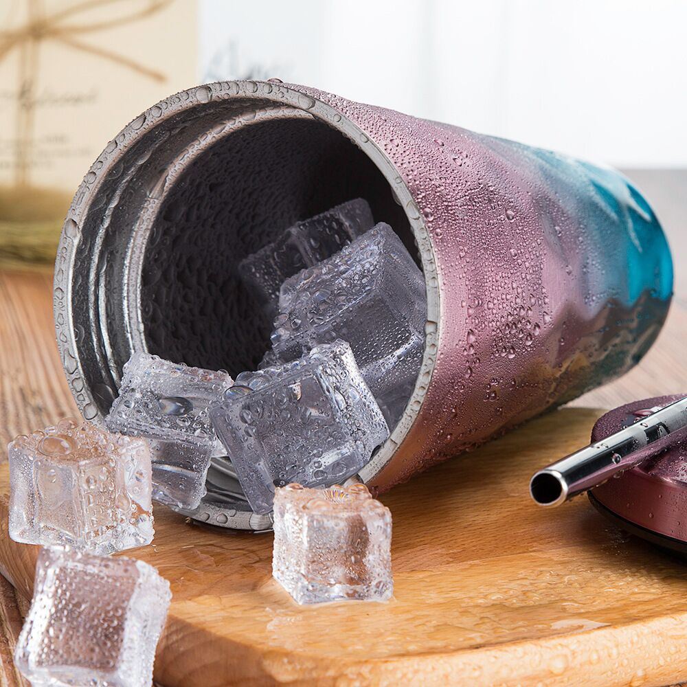Bình giữ nhiệt inox 2 lớp cao cấp 500 ml + ống hút inox (nhiều loại, nhiều màu)