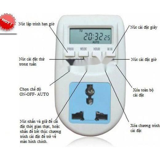 • Ổ cắm hẹn giờ dạng điện tử thông minh, chính xác đến từng giây. Chỉ cần cài đặt lần đầu, sau đó thiết bị sẽ hoạt động hoàn toàn tự động.