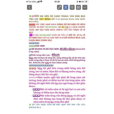♐️♐️♐️♐️ Nệm muốn ngồi bệt phải để lưng nệm sát tường, hoặc phải có điểm tựa kê vào lưng nệm, nếu không chỉ ngồi thôi chứ ko tựa ngả lưng ra thư giãn được.