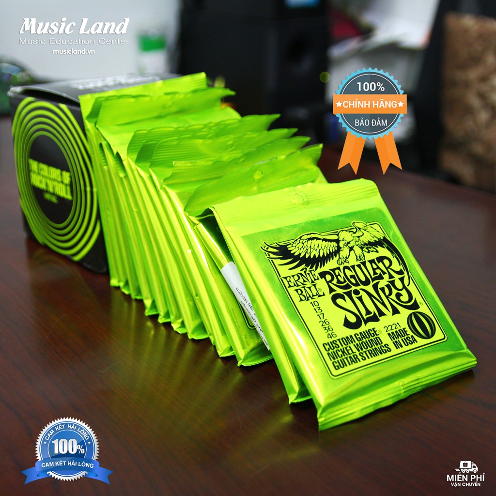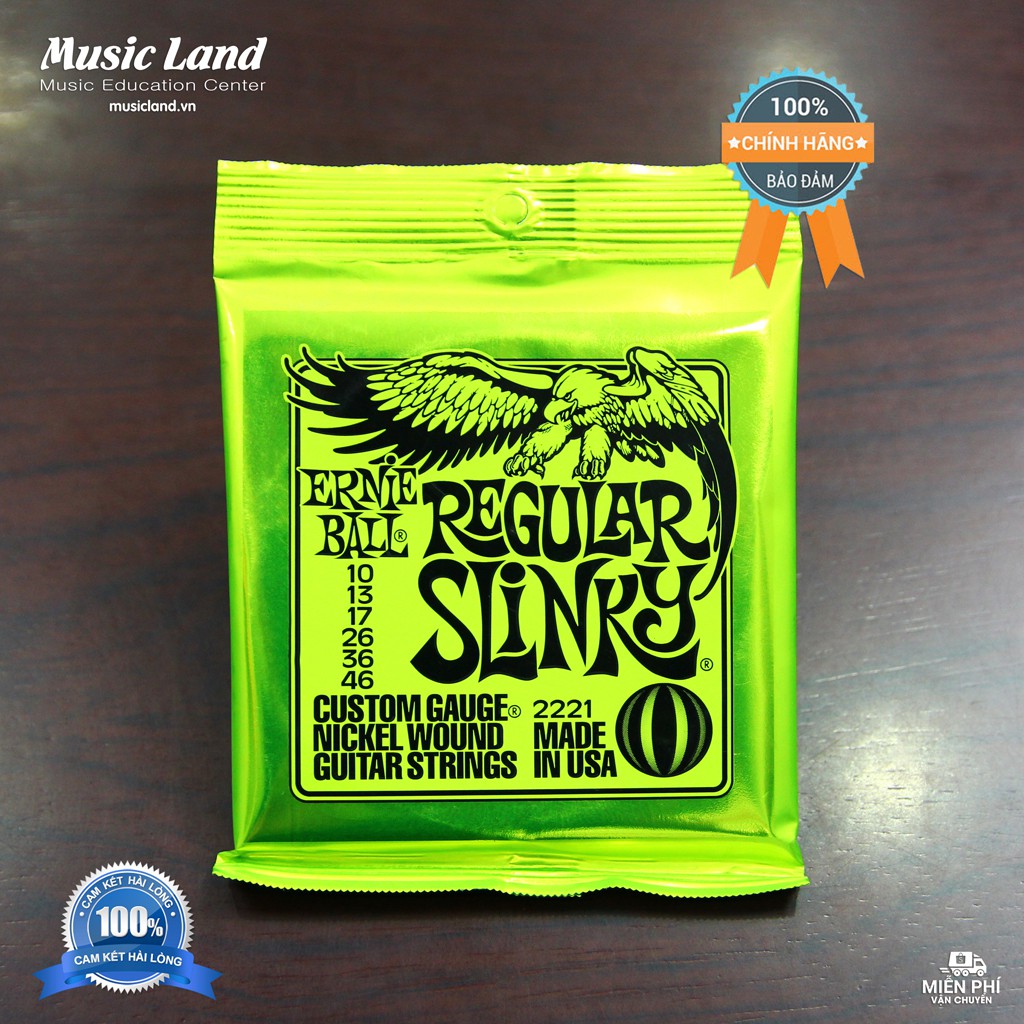 - Dây Đàn Guitar Điện Ernie Ball 2221 là mẫu phụ kiện dành cho đàn guitar điện (6 dây) thuộc series Regular Slinky Nickel Wound của hãng Ernie Ball (Mỹ), kích cỡ 10-46, đây là mẫu dây nằm trong top 5 những mẫu dây guitar giá rẻ chất lượng rất tốt dành cho người tiêu dùng mong muốn giá rẻ.