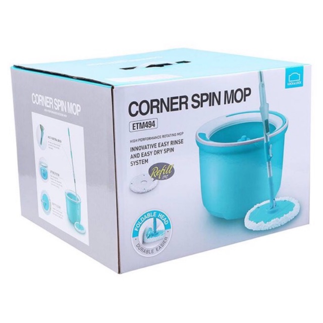 Bộ cây lau nhà xoay tay Lock&Lock Corner, Ф 330*235mm, 2 bông lau Màu xanh biển [ETM494]- Tên hàng hóa: Cây lau nhà Lock&Lock 494