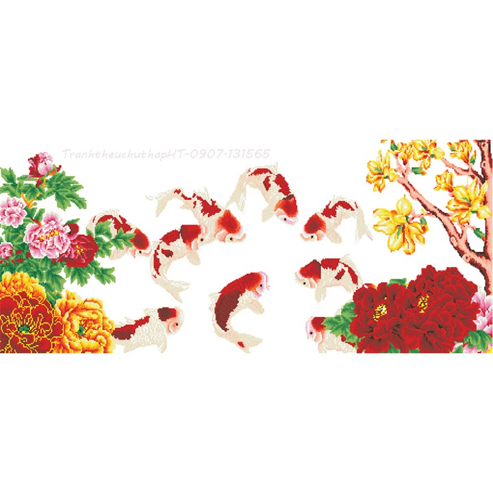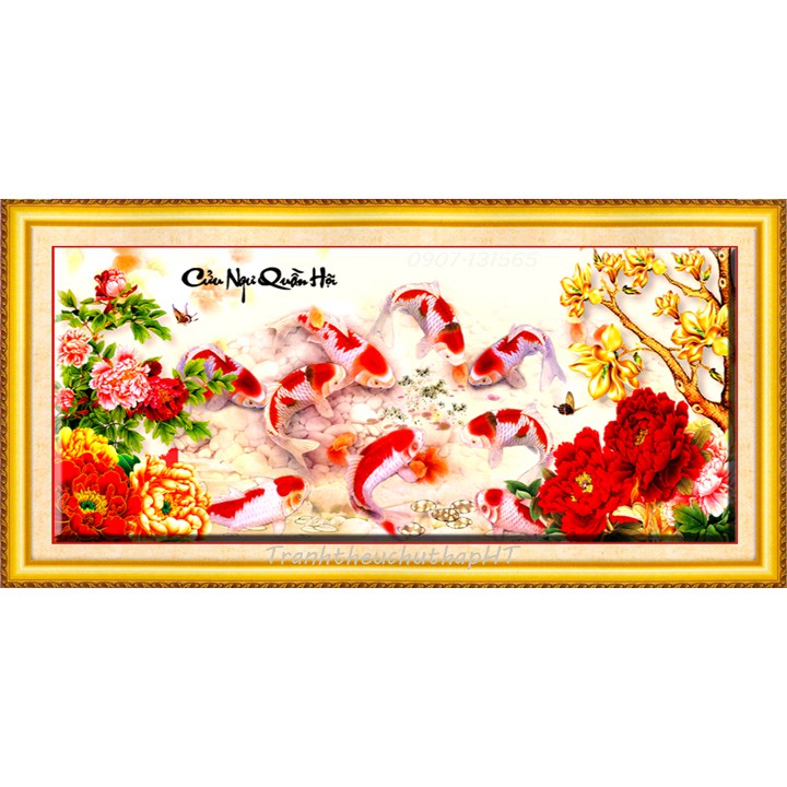 Tranh thêu chữ thập Cửu ngư quần hội LV3274 - tự thêu