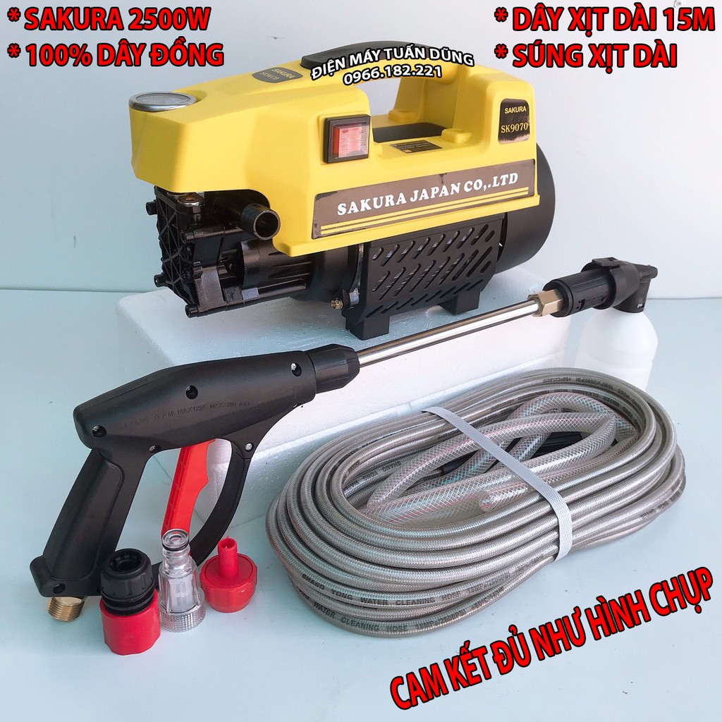 Nhà cửa & Đời sống > Dụng cụ & Thiết bị tiện ích > Dụng cụ > Máy rửa áp lực nước || Máy rửa xe Sakura 2500W, 100% dây đồng, có tự hút, tặng kèm bình bọt SúngDài Dây 15mCòn hàng