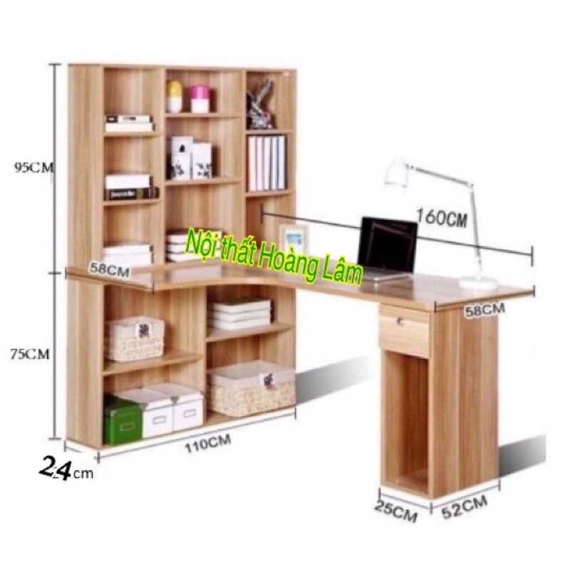 Bàn học góc liền giá sách chữ L cỡ to