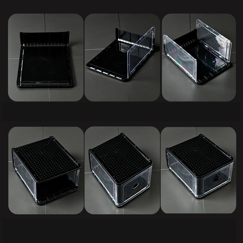 - Chất liệu nhựa mica cứng, không ọp ẹp như cái loại hộp gấp