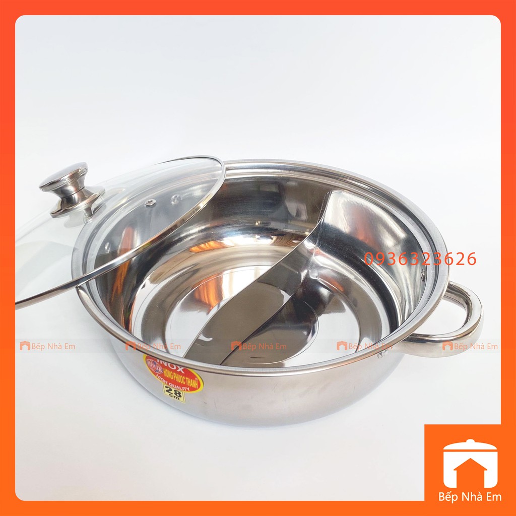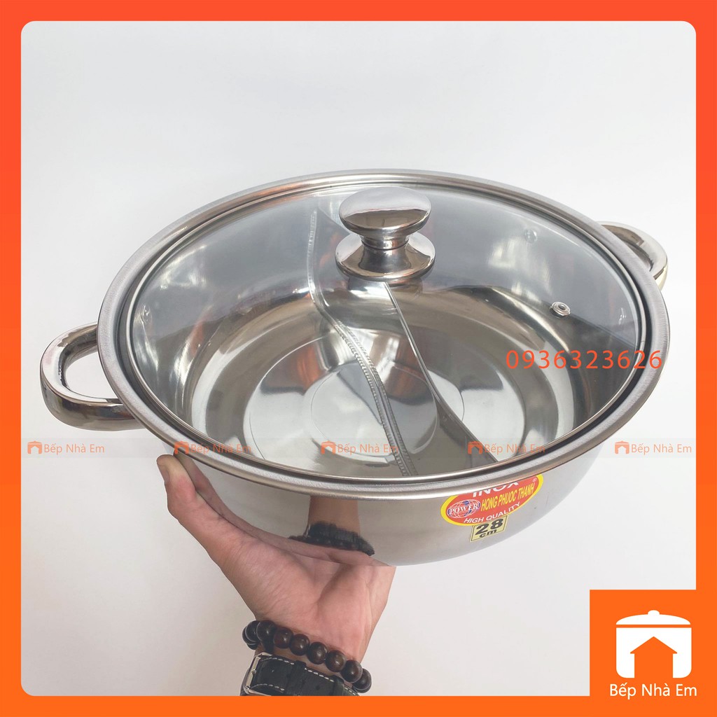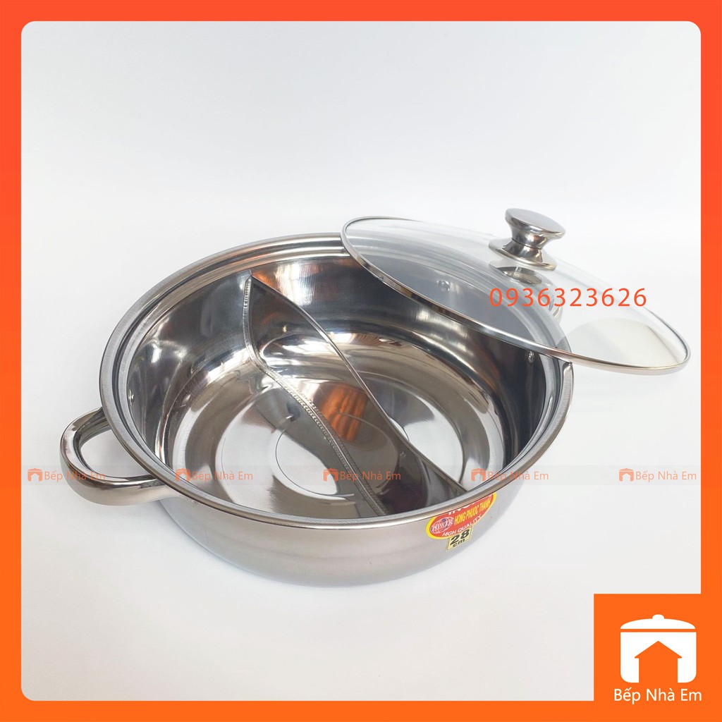 Nồi Lẩu 2 Ngăn Inox Dày Nắp Kính Cao Cấp Nhiều Size - Hàng Việt Nam Sản Xuất