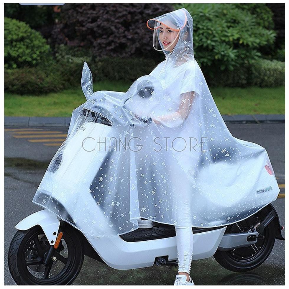 phần lưỡi treo dài, có thể dịch chuyển được, đội mũ bảo hiểm thoải mái, do có phần nới rộng được trên đỉnh mũ. các mẹ hay trang điểm hoặc bị cận hoàn toàn yên tâm khi sử dụng áo mưa này.