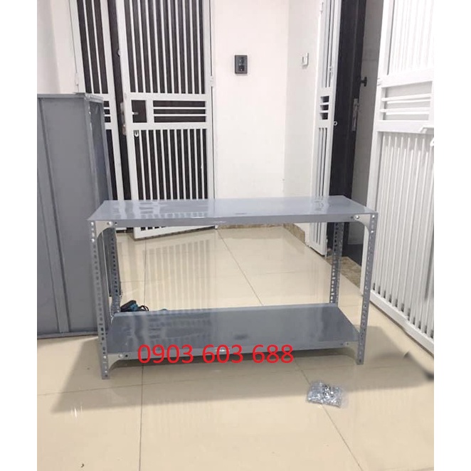 Kệ Sắt V Lỗ Đa Năng Dài 0,8m x Rộng 0,4m x Cao 0,6-0,8m x 2 Tầng Đựng Đồ để lắp ghép thành bộ kệ để chứa hàng trong kho, siêu thị, để đồ trong nhà, kệ hồ sơ chứng từ.Kích thước: Dài 0,6m x rộng 0,4m x cao (0,6m, 0,8m) x 2 sàn