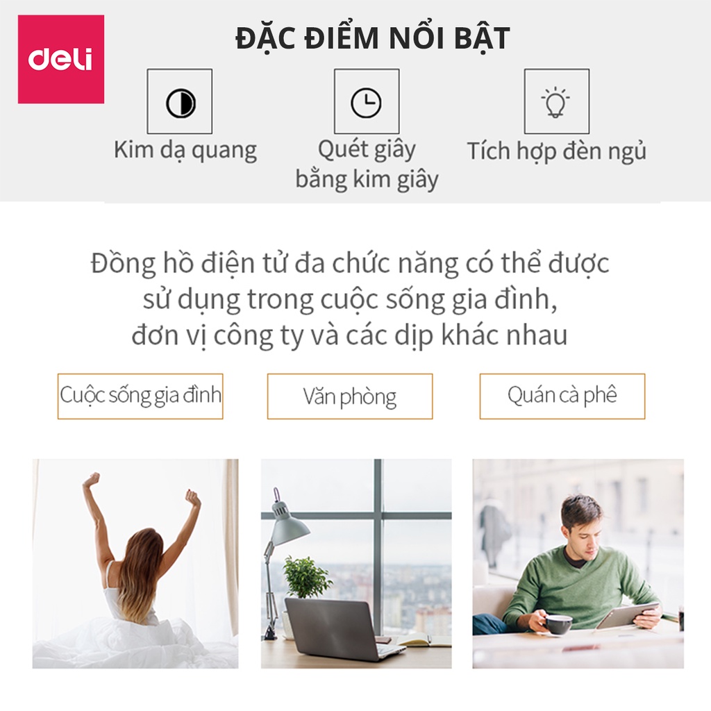 Đồng hồ báo thức DeliTÍNH NĂNG SẢN PHẨM: