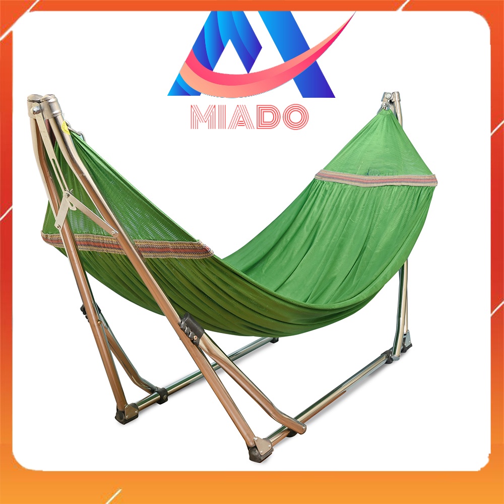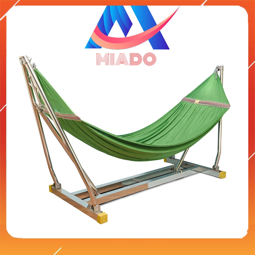 -Lưới võng có cán thép 2 đầu giúp võng luôn xòe rộng, không bị lật, không vướng vào khung võng khi đung đưa.