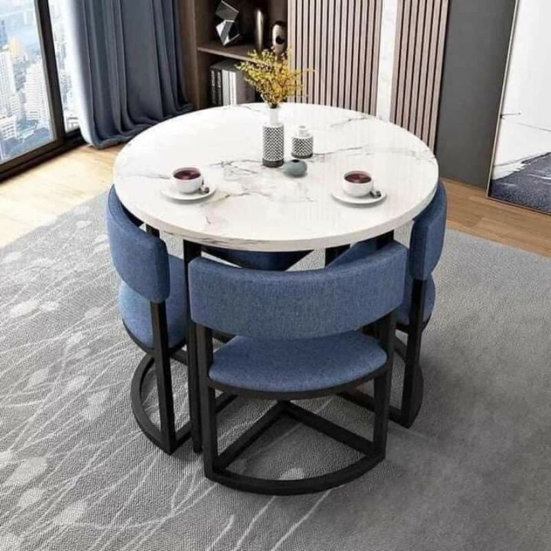 Nhà cửa & Đời sống > Nội thất > Tủ bếp || BỘ BÀN ĂN TRÒN 4 GHẾ XẾP GỌN THÔNG MINH CHÂN SẮT MẶT ĐÁCòn hàng